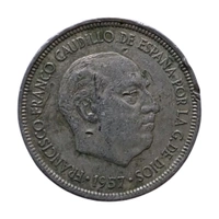 1957 Spain 5 Pesetas Coin