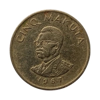 1967 Congo 5 Makuta Coin