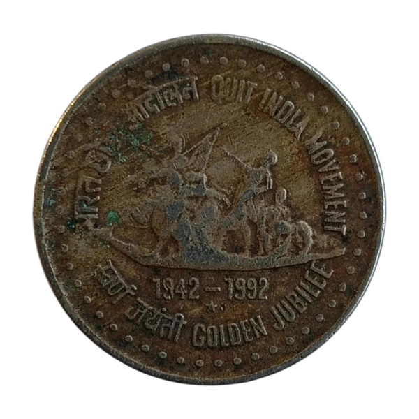 1992 1 Rupee Scarce Coin - Quit India Movement - Golden Jubilee